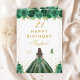 Green Floral Brunette Hair Girl Happy Birthday Card