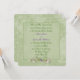 Daisy bouquet with pearls on green floral embossed wedding invitation.