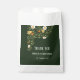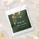 An elegant garden wedding reception thank you bag for your wedding guests. It has a floral theme of climbing plants and vines, and small orange flowers, yellow tulips and white blossoms. All of the details can be personalised easily in the options box. This green floral wedding favour is part of a larger wedding collection which includes matching invite, RSVP, guestbook and more, which you can see here: https://www.zazzle.com/collections/green_floral_wedding-119833848666747695