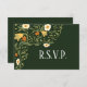 A green wedding announcement featuring a floral theme of swirling flowers and vines over a dark green background, this decorative flowery RSVP card would be perfect for a garden wedding theme. Please note this has a matching wedding invitation which you can see here: https://www.zazzle.com/green_floral_wedding_invitation-256325537398693372