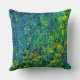 Green Yellow Flowers Polyester Throw Pillow . Nature Abstract Painting.