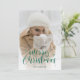 Green Foil Script Snow Photo Christmas Cards