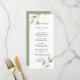 This Wedding Menu featuring painted watercolor leaves in various shades of green.