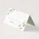 This Wedding Table Place Card featuring painted watercolor leaves in various shades of green.