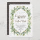 Beautiful woodland-inspired invitation with a frame made up of pine boughs, berries, laurel, pine cones and woodland greenery. The delicate hand painted sprigs surround your text announcing your special Confirmation day- with a cross at the bottom. A simple design in beautiful greens and browns with white dotted brown on the on the reverse side.