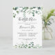 This green foliage night before rehearsal dinner invitation is perfect for a modern event. The design features watercolor hand-drawn elegant botanical eucalyptus branches and leaves, arranged in beautiful bouquets and geometric patterns.