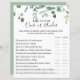 This green foliage over or under baby shower game is the perfect fun activity for a simple baby shower. The design features watercolor hand-drawn elegant botanical eucalyptus branches and leaves, arranged in beautiful bouquets and geometric patterns.