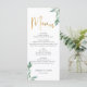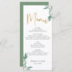 Elegant Green Foliage Flat Menu Card (size 4" x 9")