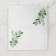 Pretty folded place card done in a white watercolor paper look, with graphics of two sprigs of greenery, on front and back. The inside of the card is done in a dark green. Personalise the front of the card by hand for each guest at your reception.