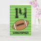 Personalised football 14th birthday card for son, grandson, godson, etc. The front features a place for you to personalise with his name. A great football birthday card for football players and football fans.