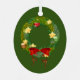 Your photo, family name and the year framed in green on the front. The back has a Christmas wreath. Photo Credit: Photography © Storytree Studios, Stanford, CA