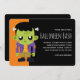 A Halloween party invitation with a fun Halloween image featuring a green Frankenstein monster.