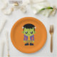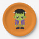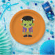 Paper plates with a fun Halloween image featuring a green Frankenstein monster.