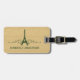 Elegant and chic French Flourish Luggage Tag featuring a faux woodgrain look background and an Eiffel Tower design in dark green adorned with cascades of stylish swirls. This girly and trendy design is easy to customise with the personalised text of your choosing. Click "Customise It" to find more personalisation options.