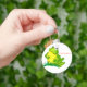 A keychain with a cute green frog going, 'gribbet, gribbet...'; from a watercolour illustration by Judy Adamson. This design also fits stickers, buttons and fridge magnets.