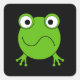 Cartoon of a green frog. This frog has a confused, puzzled face. A fun design.