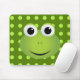 This frog ipad case is perfect for any frog lover! It features a design of a cute green cartoon frog with a big smile. The frog is on a dark green background with light green polka-dots.