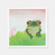 Green Frog Relaxing on the safety of the lily pad in the pond. Lily pads are an important hiding place for frogs. Book Illustration from a children's book: 'LOOK , A FROG!' (Written and illustrated by Julia Doria) Perfect gift for frog and nature lover. Frog in pond design. Frog in pond drawing.