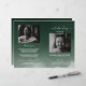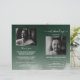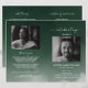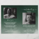Funeral memorial program featuring on the front a photo of the deceased, thier name, dates, the memorial venue, date of the event, and elegant frame. On the inside is an obituary, and order of service; and on the back another photo, a thank you note and the second venue for after the funeral.