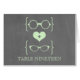 Quirky and chic Geeky Glasses Chalkboard Table Number Card in mint green featuring a cute heart flanked by two pairs of nerdy eyeglasses, a manly pair and a girly pair representing the groom and bride on a chalkboard look background. This offbeat table card is perfect for your geek wedding! Easy to customise, simply add the appropriate table number(s) in the text field provided. Click on the "Customise It" button to find additional personalisation options.