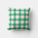 Adorable, whimsical green and white gingham pattern pillow with cute yellow sunflowers with happy faces in each of the light green squares.