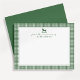 A charming green gingham nursery note card for a baby boy, featuring a delicate rocking horse illustration and customisable text. Perfect for thank-you notes, personal correspondence, or nursery stationery, this timeless design combines a classic blue check pattern with elegant details.