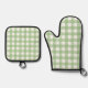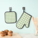Green Gingham Kitchen Gloves Oven Mitt & Pot Holder Set