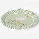 Green Gingham Neutral Silly Goose Baby Shower Paper Plate