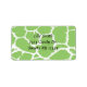 A green and white giraffe fur pattern accents this address label, customise as desired.