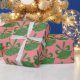 Green Glitter Bells on Pink Holiday Wrapping Paper