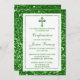 Green Glitter Cross Holy Communion / Confirmation Invitation