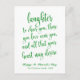 A simple calligraphy design, features a traditional Irish toast: Laughter to cheer you, those you love near you, and all that your heart may desire.