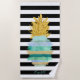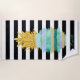 Green Glitter Pineapple Black White Stripes Beach Towel