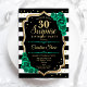 Surprise 30th Birthday Party Invitation. Feminine black, white and emerald green design with faux glitter gold. Features black and white stripes, roses, script font and confetti. Perfect for an elegant women's bday celebration. Can be personalized to show any age. Printed Zazzle invitations or instant download digital printable template.