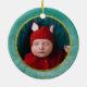Commemorate your baby's first Christmas with this cute green and gold winter woodland red fox photo keepsake ornament. This ornament is fully customisable! You can edit the text and add your own photo by clicking "personalise this template". This personalised woodland fox ornament features a gold glitter frame. It has a place to add your name and the year as well as a photo on the back! There is a background pattern of a dark green watercolor texture. This personalised fox ornament is great for your newborn baby, baby's first Christmas, and for kids!
