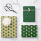 The set of three coordinating sheets includes 1. green trees on a gold background, 2. The solid color green, and 3. Gold trees on a green background.