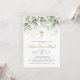 This design features an illustration of green and gold foliage in watercolor style. Above the leaves - confetti adorns the top of the card. On the green foliage there is an image of a Cross.