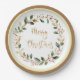 Green Gold Foliage Red Berry Christmas Paper Plate