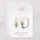 Beautiful table number card with a botanical motif -  a watercolor illustration of green and gold leaves. Table 10. Please, check all available numbers in this collection.