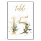 Beautiful table number card with a botanical motif - a watercolor illustration of green and gold leaves. Table 15. Please, check all available numbers