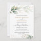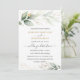 This design features an illustration of green and gold foliage in watercolor style with golden effect confetti