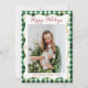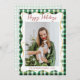 Green Gold Gingham Pattern Christmas 1 Photo Holiday Card