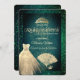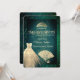 Green Gold glitter dress tiara fan Quinceañera Invitation