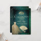 Green Gold glitter dress tiara fan Quinceañera Invitation