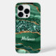 iPhone Cases with Agate Green Gold Glitter Geode Marble Custom Name Emerald Sparkle Personalised Birthday - Anniversary or Wedding iPhone Case Gift / Suppliest - Add Your Name - Text or Remove - Make Your Special Gift - Resize and move or remove and add text / elements with customisation tool. Design by MIGNED. Please see my other projects / designs and paintings. You can also transfer my designs to more than 1000 Zazzle products.