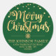 Green Gold Glitter Merry Christmas Address Classic Round Sticker