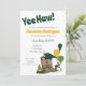 Yee haw! They're graduating and it's time to celebrate. This cute card includes a grouping of a cowboy boot topped with a graduation cap and surrounded with books, balloons, and that all-important diploma. Perfect for announcing their graduation ceremony or inviting people to the party to celebrate. Add your favourite photo on the back. Available in a neutral black along with the colours of major Texas schools. Matching products available.
