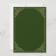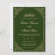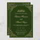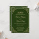 Nikah Islamic Muslim Wedding Invitation. There is a dark green background with a luxury vintage corner frame design with filigree. You can personalise the card colour and change the font style. Names of the bride and groom, date and address information can all be edited. Different paper types are available for you to choose from. White envelope is included.