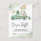 Adorable diaper raffle insert card featuring elegant watercolor greenery, adorable jungle animals and festive sage green and gold balloons.