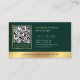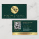 Elegant real estate agent business cards with QR code in emerald green and gold design with space for your logo. Create professional QR code business cards for your business using this green and faux gold foil effect business card design, perfect for real estate brokers, sales agents, loan signing agents or any other professional.